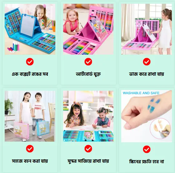আপনার সন্তানের মোবাইল আসক্তি ও অতিরিক্ত জেদ দূর করতে গিফট করুন আর্টবোর্ড বিশিষ্ট ২০৮ পিসের প্রিমিয়াম মেগা কালার বক্স সাথে!
